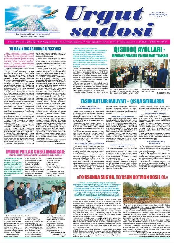 Joriy yilning 16-oktabr kuni Urgut tuman bo‘limi inspektorlari R.Obloqulov, Y.Rahmatov va N.Qodirovlarning "To‘qsonda sug‘or-to‘qson botmon hosil ol" nomli maqolasi "Urgut sadosi" gazetasida chop etildi.