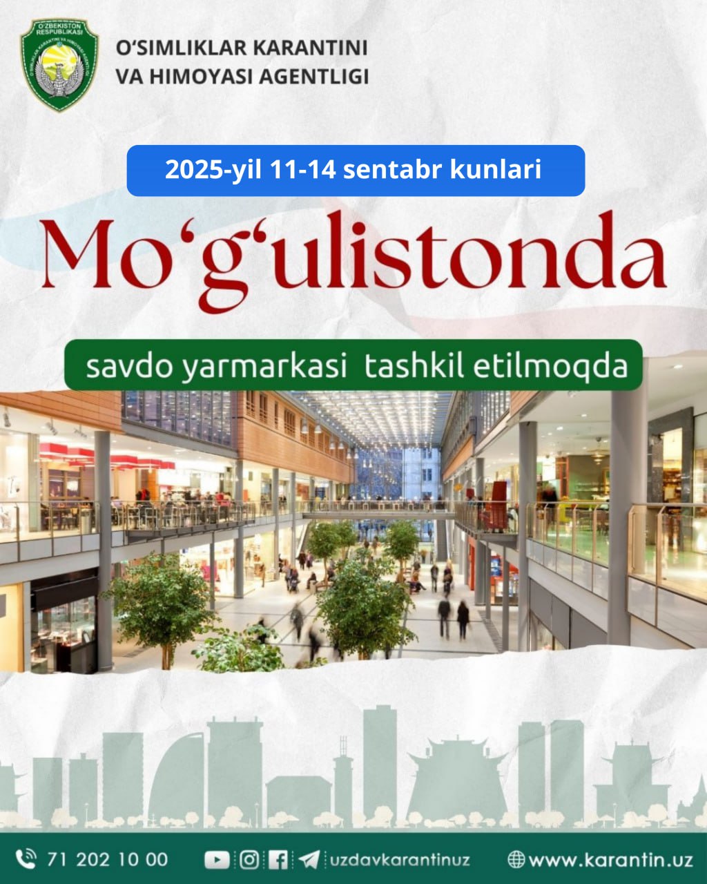 🌏 Ulan-Bator shahrida “O’zbekiston mahsulotlari” savdo yarmarkasi tashkil etiladi 🇺🇿 🇲🇳 O‘zbekiston va Mo‘g‘uliston o‘rtasidagi savdo-iqtisodiy hamkorlik doirasida Ulan-Bator shahri, “EMART” savdo tarmog‘ida 11-14-sentabr kunlari yirik savdo yarmarkasi tashkil etilmoqda. Ushbu yarmarka O‘zbeki
