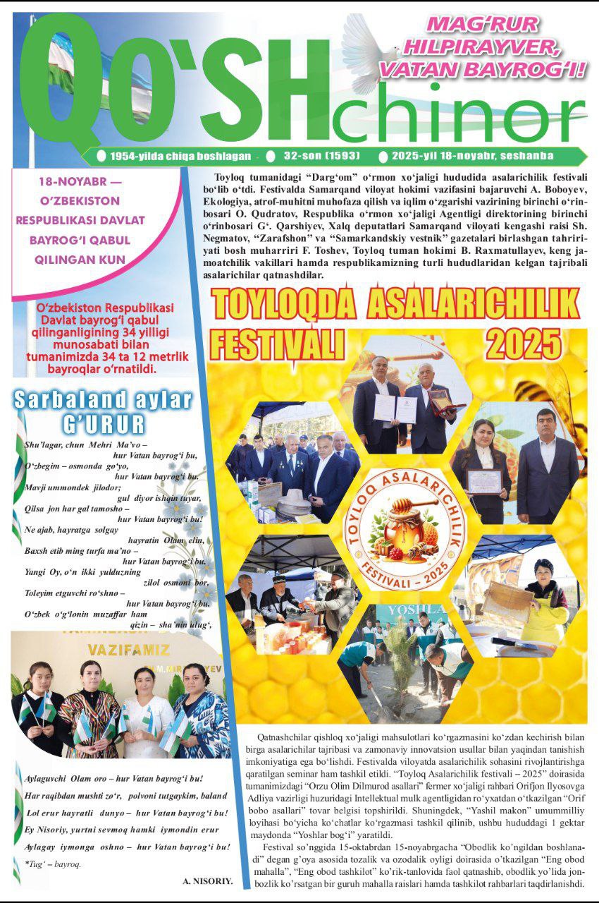 🗞 “Qo‘shchinor” gazetasining 2025 yil 18-noyabrdagi sonida Toyloq tuman bo‘limi zararli organizmlarni prognozlashtirish va monitoringi bo‘yicha yetakchi mutaxassisi Sh. Sharofov hamda tuman bo‘limi fitosanitar nazorat inspektorlari Z. Aliqulova va A. Ergashevlarning “Kuzgi raskopka nima uchun kerak