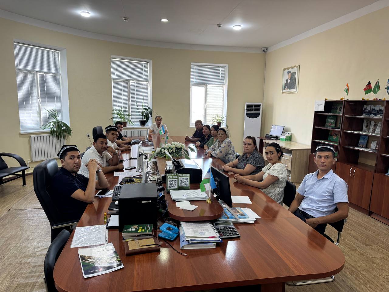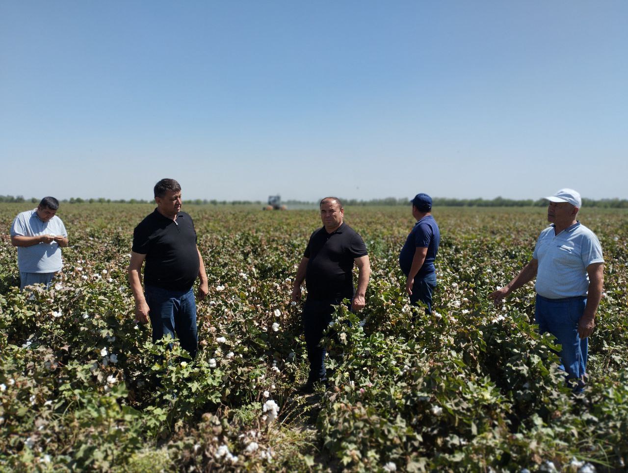 O‘simliklar karantini va himoyasi Agentligi boshqarma boshlig‘i Sh.Xudoyberdiyev va viloyat boshqarmasi boshlig‘i Sh.Urazov, tuman bo‘limlari xodimlari bilan hamkorlikda, Oqdaryo tumanida g‘o‘za maydonlarida olib borilayotgan defoliatsiya jarayonlarini nazorat qildi.