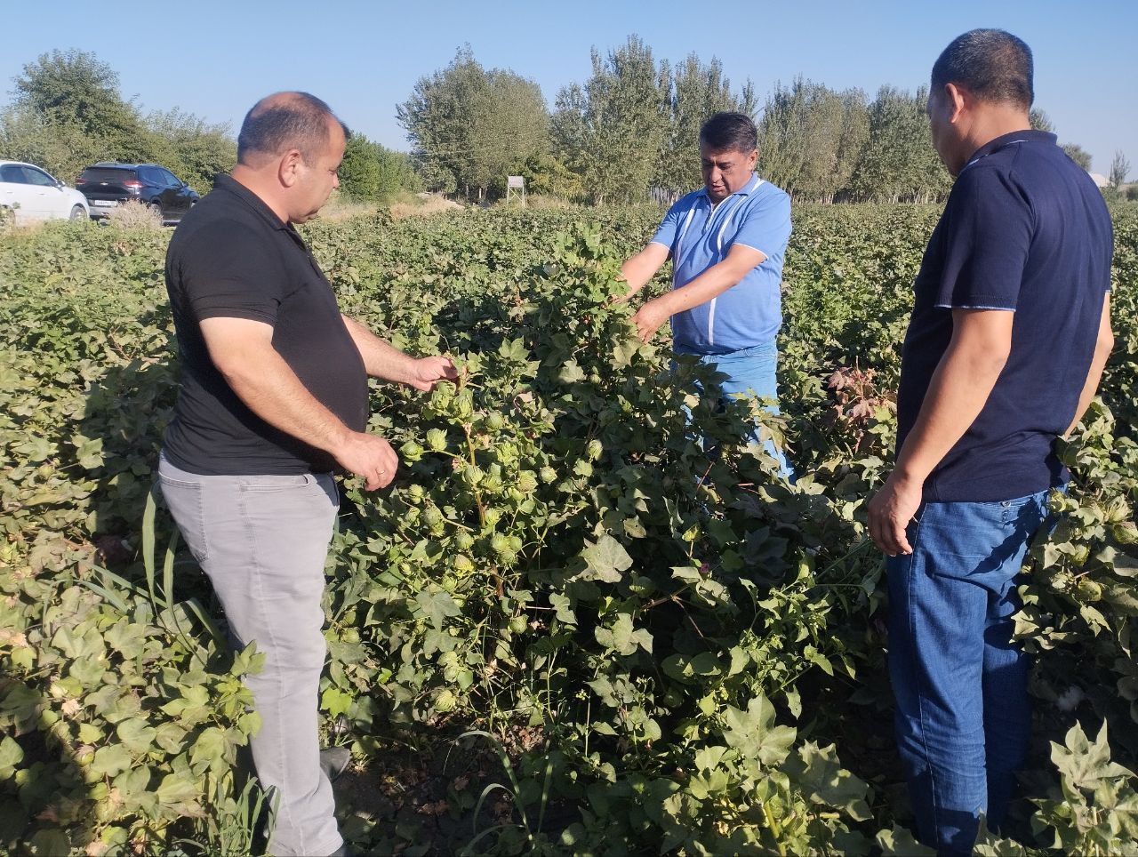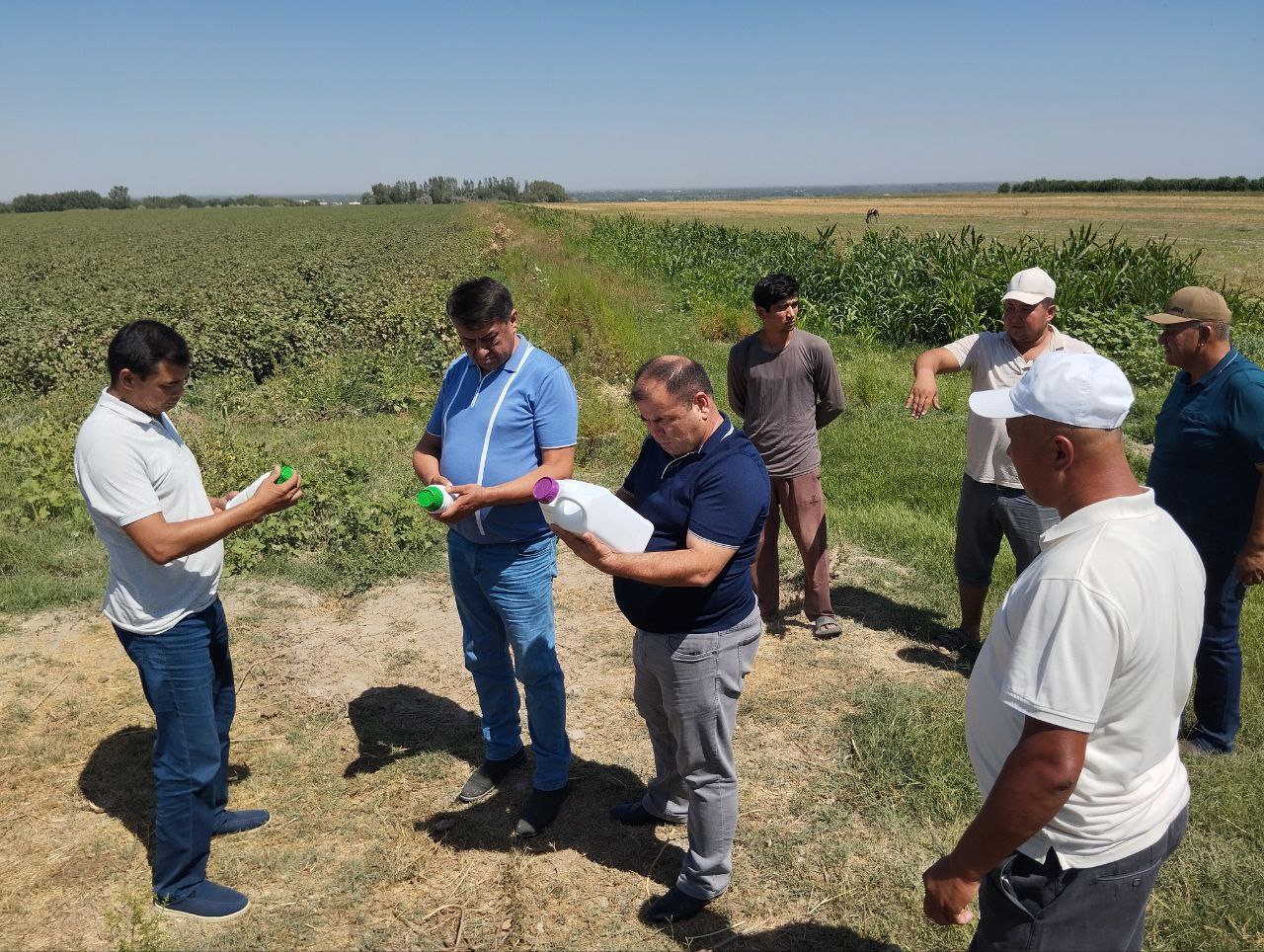 G‘o‘za maydonlarida defoliatsiya: “Etefon” preparati qo‘llanilmoqda O‘simliklar karantini va himoyasi Agentligi boshqarma boshlig‘i Sh. Xudoyberdiev hamda viloyat boshqarmasi boshlig‘i Sh. Urazovlar Ishtixon tumanidagi g‘o‘za maydonlarida olib borilayotgan defoliatsiya tadbirlarini nazorat qildil
